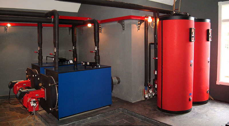 Suministro e instalación de sistema de calefacción, calentamiento de piscina y suministro de agua caliente sanitaria. La instalación cuenta con 2 calderas de alto rendimiento y 2 tanques intermediarios.