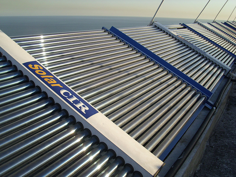 Suministro e instalación de paneles solares tipo Termosifón de 48 tubos (superficie de captación total instalada: 90 m2)