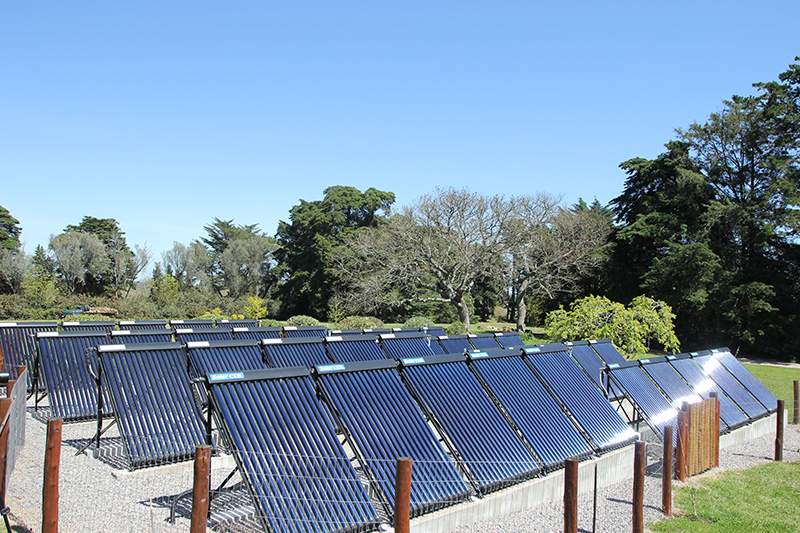 Suministro e instalación de paneles solares tipo Heat Pipe de 15 tubos (superficie de capacitación total instalada: 80 m2) El sistema alimenta la piscina cerrada del hotel.