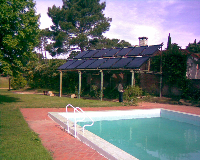 El sistema solar calienta la piscina abierta en verano y la calefacción de la casa en invierno.