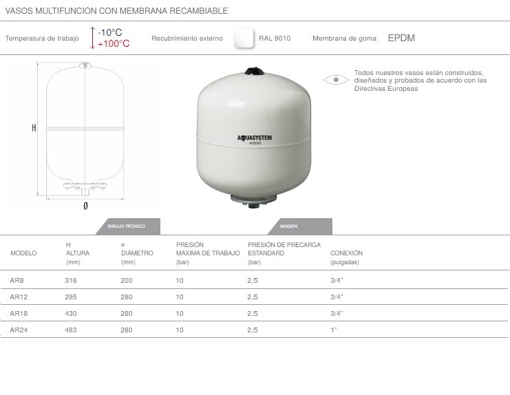 Tanques de expansión de 8 a 24 l marca AQUASYSTEM (Italia)